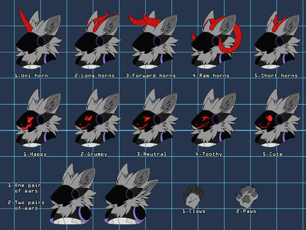 ⦿ Face: Happy, grumpy, neutral, toothy, cute